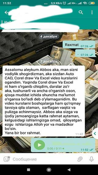 Bunday kafolat berishimiz sababi kursimizdan yillar davomida ko'pgina oquvchilar Autocad dasturini o'rganishdi va natija olishdi.