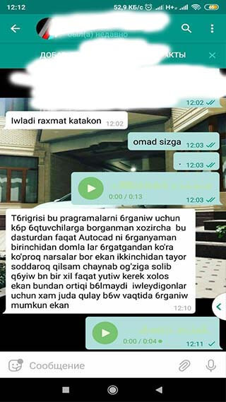 Hozirgi kunda AutoCAD dasturini mukammal bilish - doimiy va yuqori daromad topish yo`llaridan biridir. Sizda ham AutoCad dasturini o'rganish istagi bo'lsa hoziroq kursimizga yoziling.
